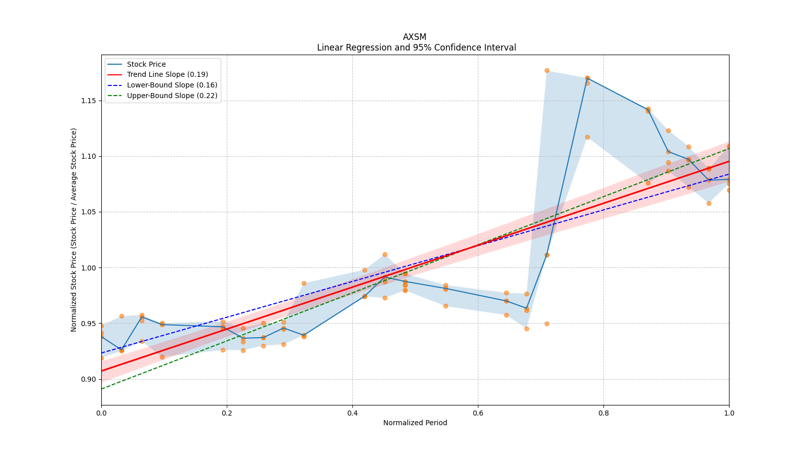 | AXSM | 0.16 | 0.19 | 0.67 | 12.8 | 148.54 | 167.55 | 144.00 | 156.70 | 184.40 | 2025-12-09 | 2026-01-09 | 34 |