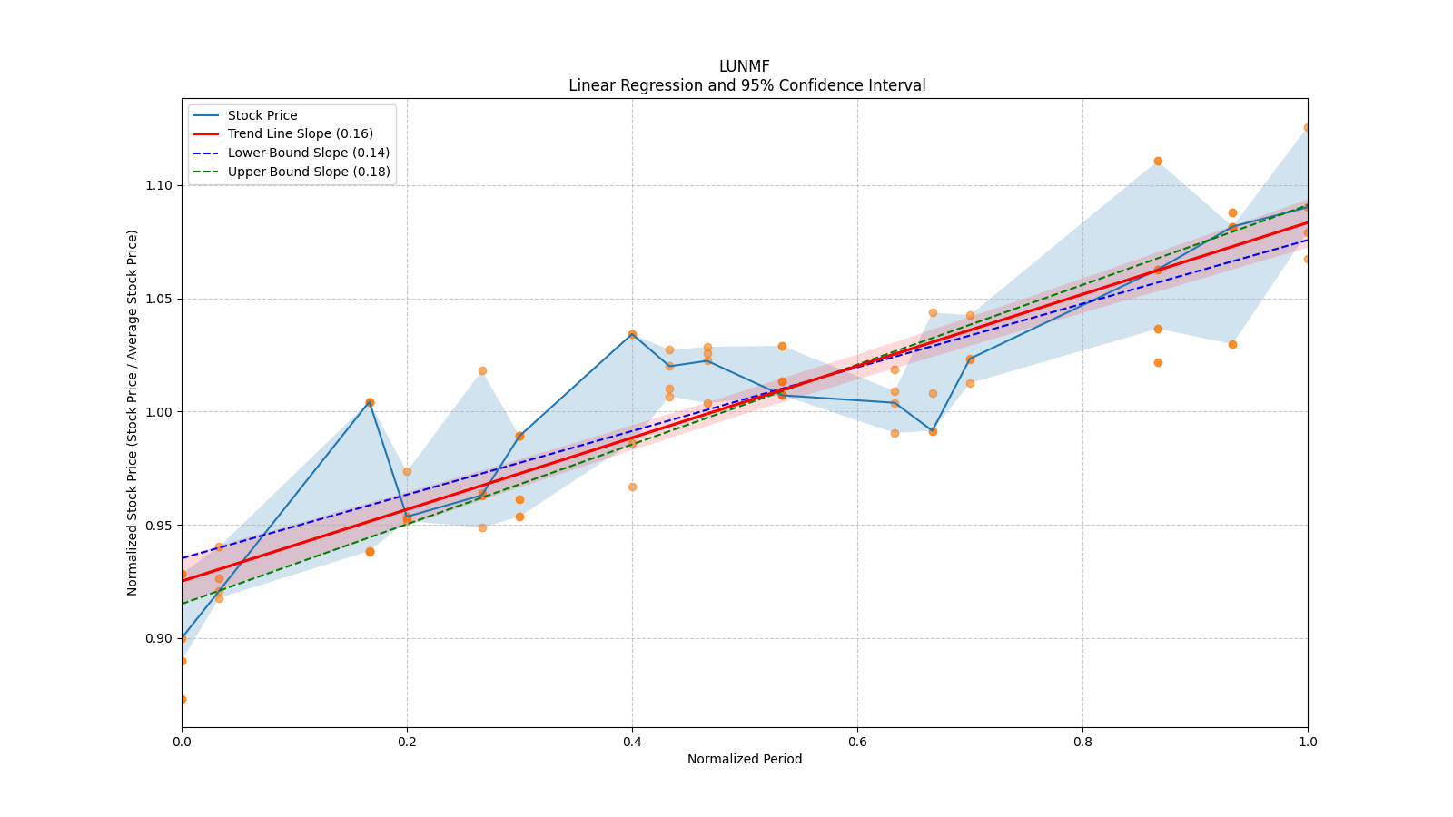 | LUNMF | 0.14 | 0.16 | 0.78 | 15.0 | 19.57 | 22.50 | 18.41 | 21.08 | 23.73 | 2025-12-09 | 2026-01-08 | 25 |
