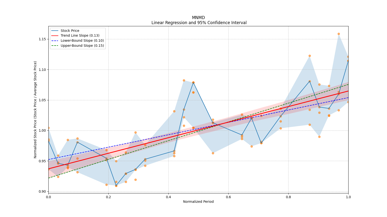 | MNMD | 0.10 | 0.13 | 0.51 | 10.9 | 13.25 | 14.70 | 12.00 | 13.19 | 15.29 | 2025-12-09 | 2026-01-09 | 23 |